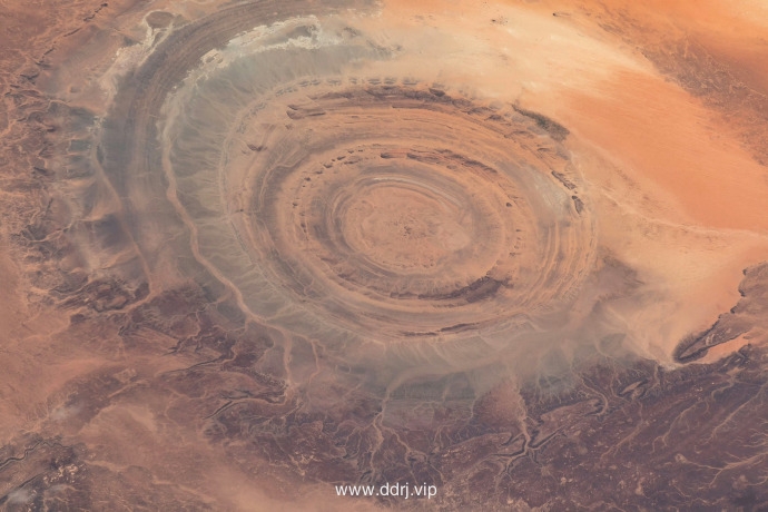 撒哈拉之眼,位于非洲毛里塔尼亚境内,近日由阿联酋宇航员苏丹·尼亚迪(Sultan AlNeyadi)拍摄。