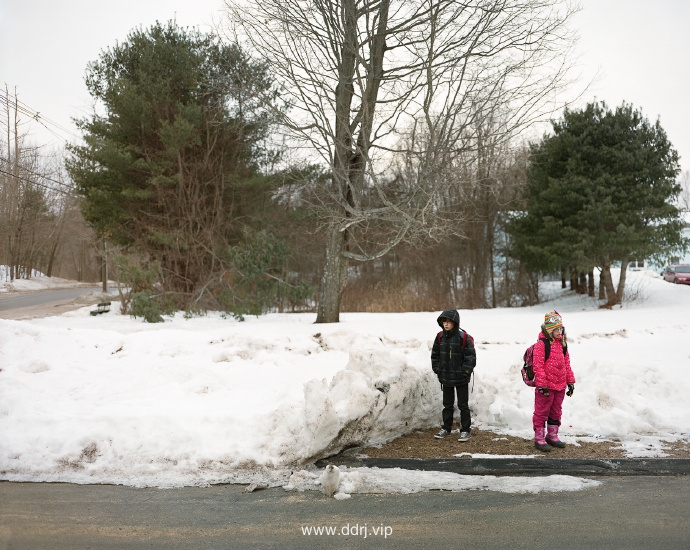 清晨,等待校车的孩子们 | 摄影师Greg Miller