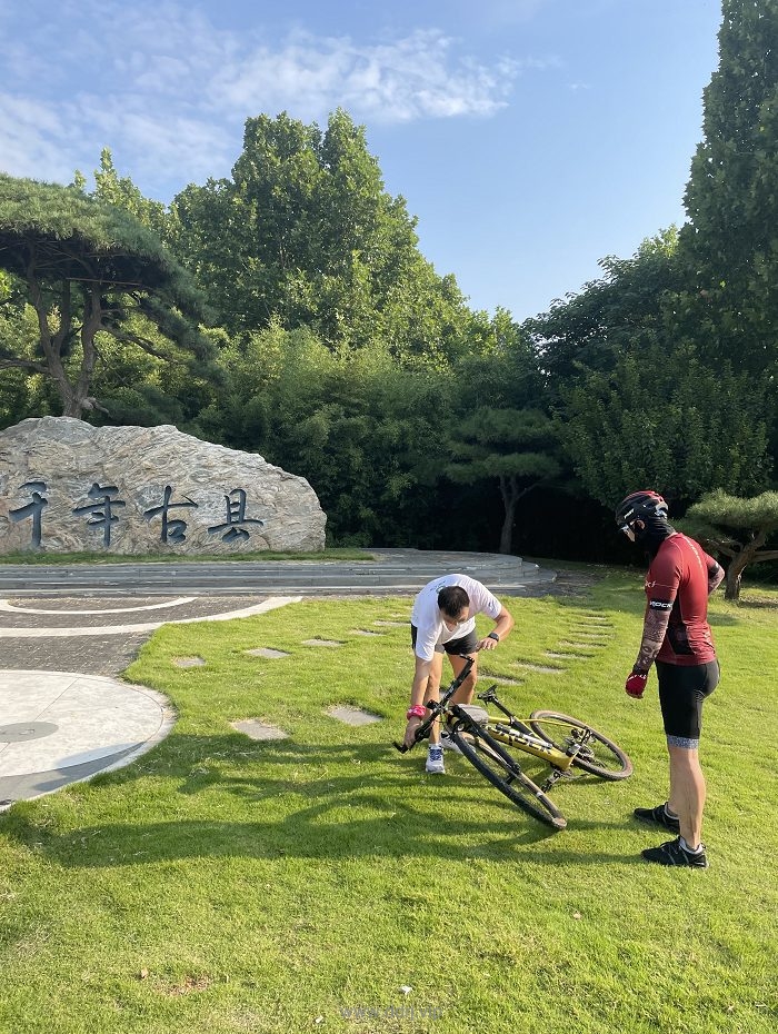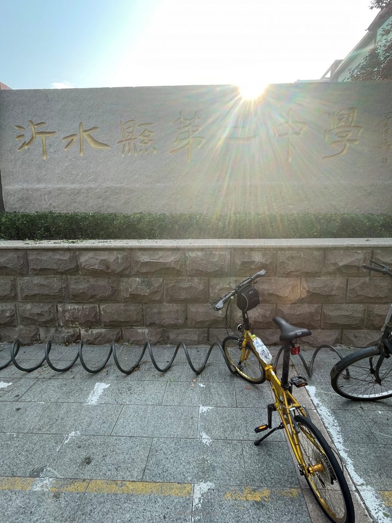 我们俩骑车还是比较默契的,水平相当,在选发车点时,我决定选沂水二中,为什么选这里?